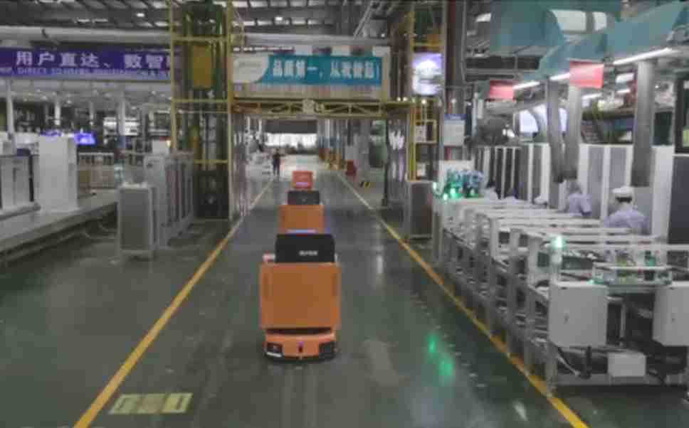 为车载冰箱物流配送打造的智能解决方案,,,包含产中物流通过潜伏举升AMR搬运至线边,,,产后成品物流智能仓储,,流程包含产中物流智能齐套入库,,,,线边安灯叫料AMR智能配送至线边,,,成品入库、、、出库,,通过无人堆高车机器人,,,,智能仓储管理替代人工作业管理,,,,实现更高存储、、、更高效率、、、更具柔性化的解决方案。。。